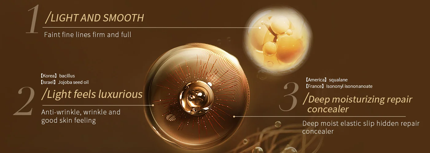 | Ingredients | Niacinamide, Tremella polysaccharide, Camellia seed oil, Jojoba seed oil, Ginseng extract, Cordyceps sinensis extract, Collagen, Pearl powder. |